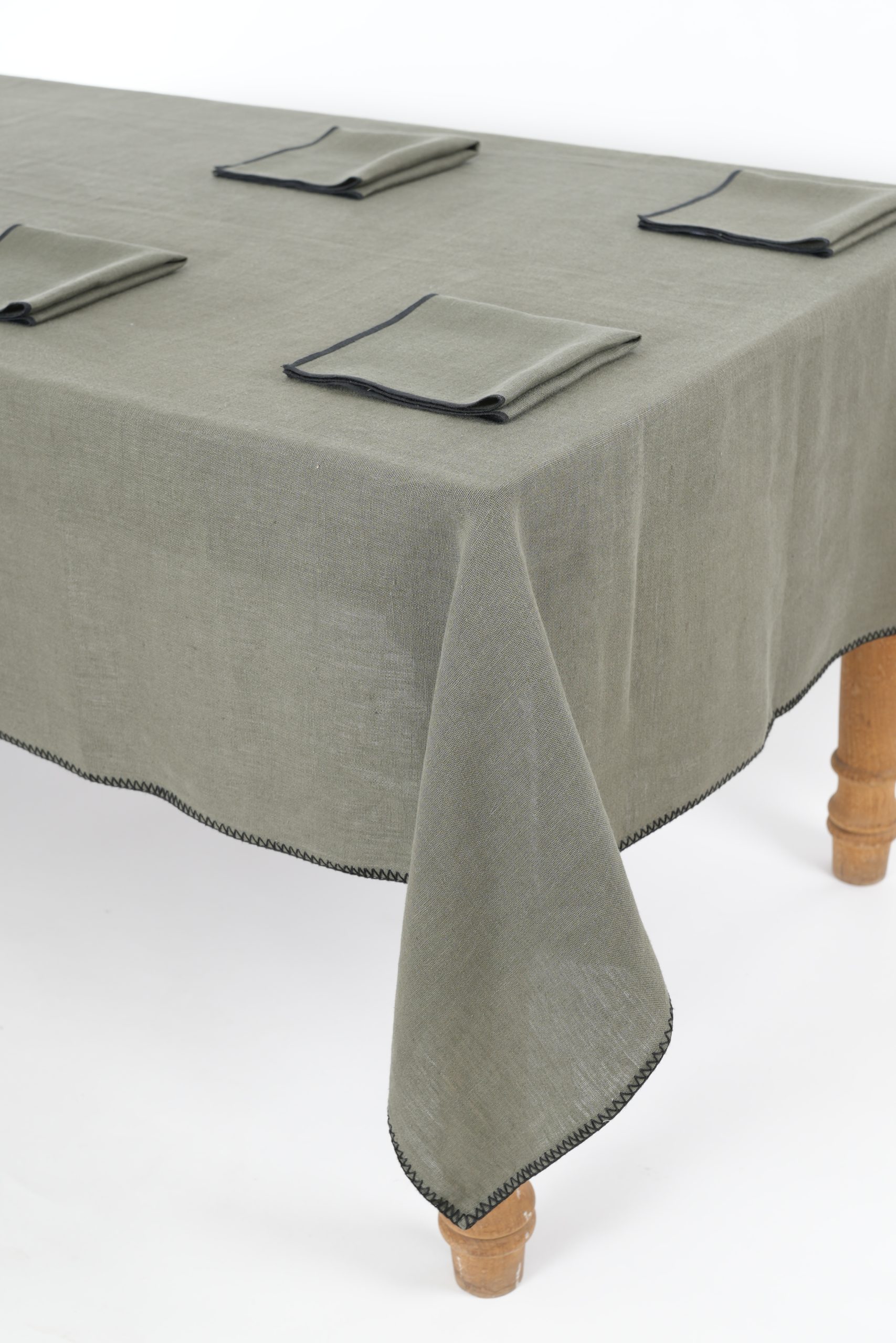 TABLE CLOTH SET WITH 8 NAPKINS 43X43 100% LINEN 200 GSM END HEM FINISH GARMENT WASH